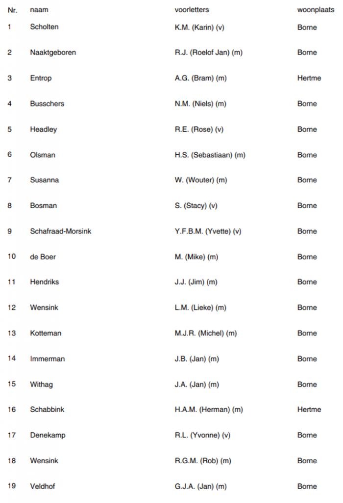 Wij zijn lokale partij met een krachtig team van bevlogen Bornenaren. Eerlijk, aanspreekbaar en toekomstgericht. Altijd op zoek naar wat goed is voor Borne, Hertme en Zenderen op de lange en korte termijn. Wij hebben de vrijheid om – los van landelijke politiek – een eigen Bornse koers neer te zetten. Samen maken we Borne mooier en sterker.